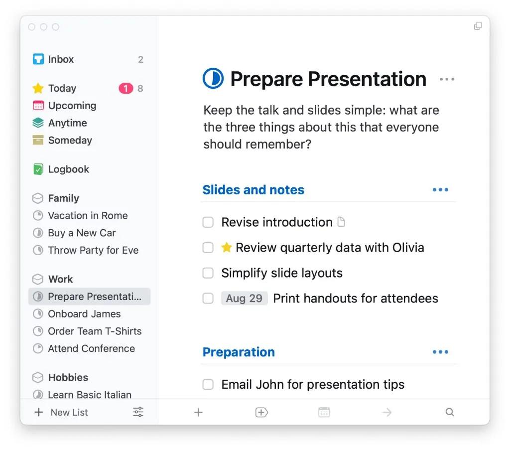 Dynamic TypeはまだMacに導入されていませんが、Cultured CodeはmacOS版Thingsを同様に調整可能にしました。Things 3.18では、「Things」→「設定」→「一般」で14種類のテキスト表示サイズを選択できます。Thingsの詳細については、Cultured Codeブログをご覧ください。